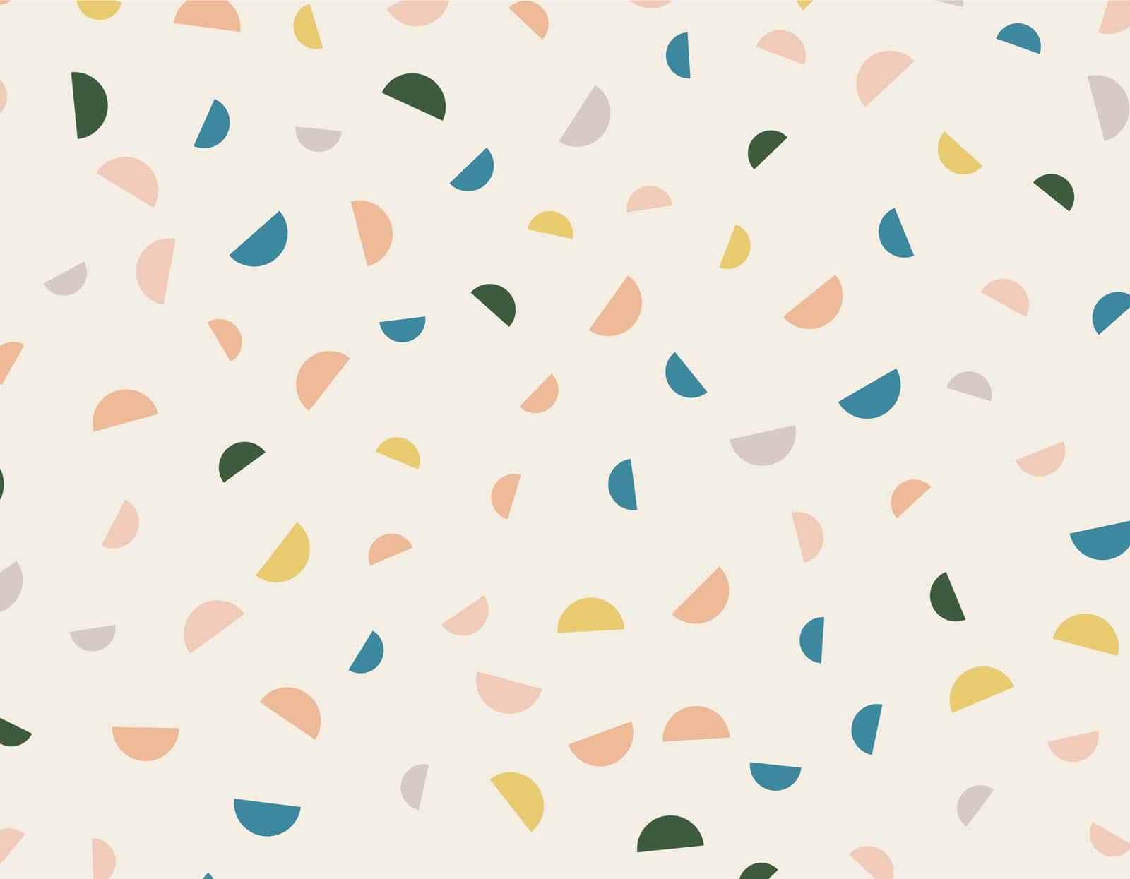 טפט קיר חלום בוהו בעיצוב הדפסי חצאי עיגול מנימיליסטיים בסגנון בוהו בגדלים שונים, המפוזרים באופן אקראי על פני רקע בז' בהיר.