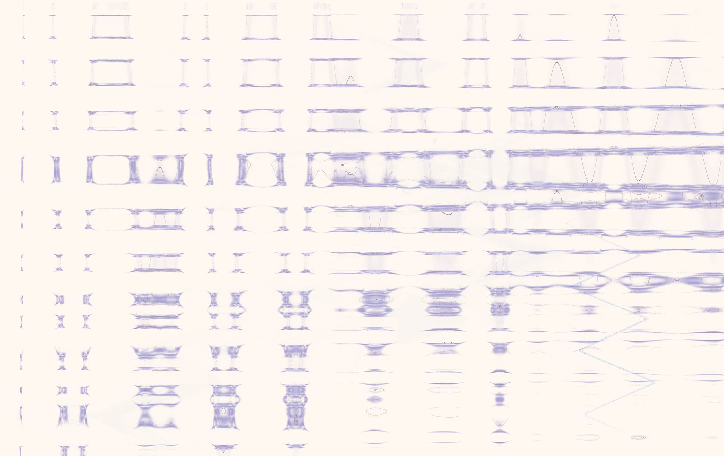אלמנטים מרובעים קטנים, מחופים בטקסטורת בד עדינה, משתלבים בתוך גלי הצבע הסגולים ויוצרים מראה תלת מימדי מרתק.