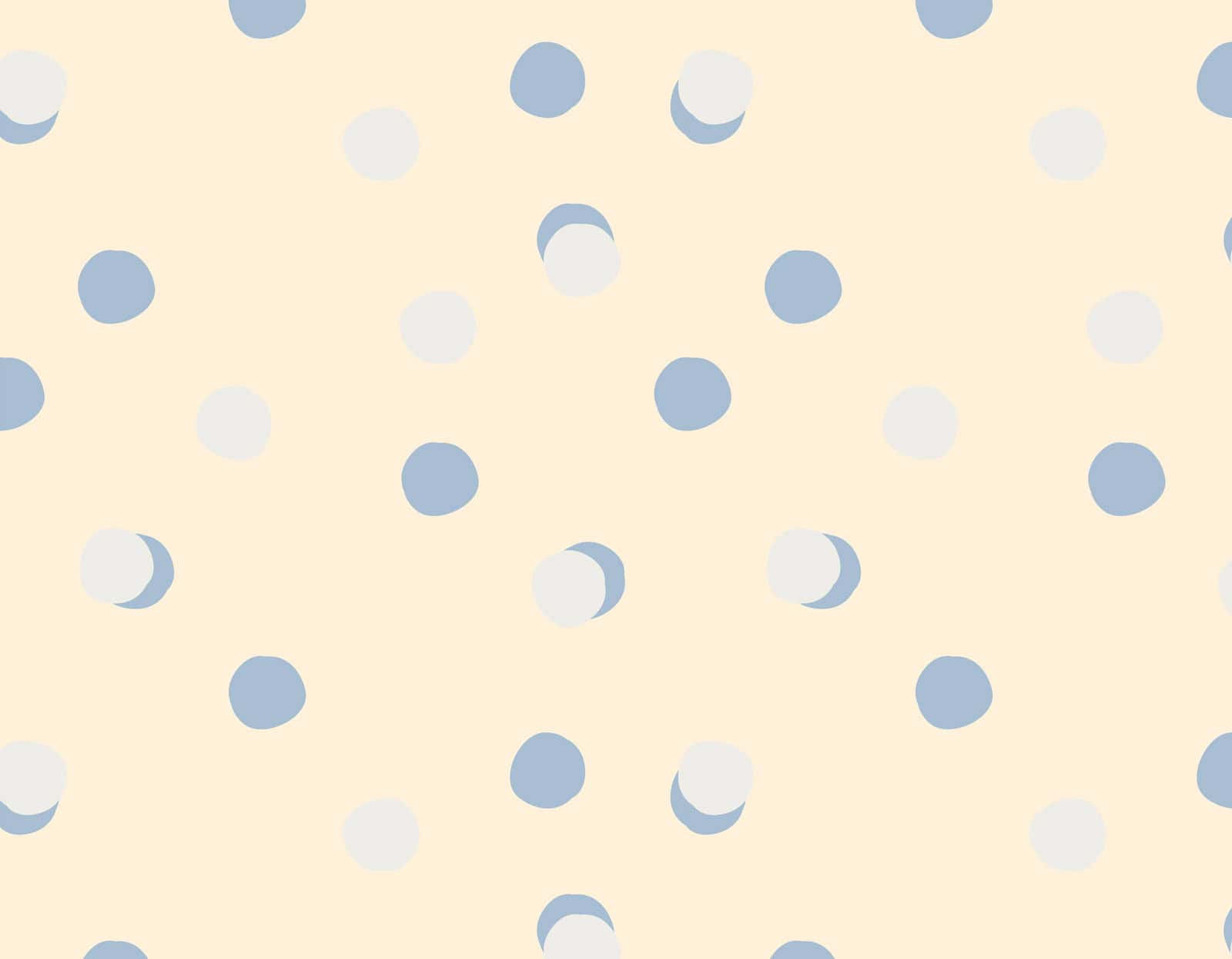 טפט קיר מנוקד עם נקודות פולקה כחולות בשני גוונים על רקע צהוב בהיר, הנקודות מפוזרות באופן אקראי על פני הרקע.