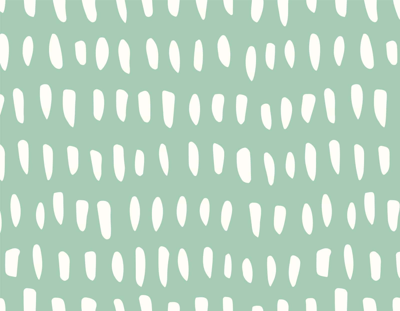 על גבי רקע ירוק טבעי ומרגיע, מתפרשים אלמנטים דמויי גרעין המזכירים ציורי קיר עתיקים ומעוררים תחושה של קסם ושלווה.